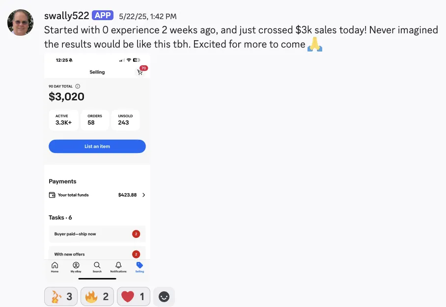 When you start reselling, your profits are considered income. If you’re only making a little on the side, it’s usually as simple as reporting your earnings during tax season. Most selling platforms, like eBay, PayPal, and Amazon, will only issue you a 1099-K tax form once you pass certain thresholds (currently $600 in sales for the year in the U.S.). That means if you make less than that, the platform won’t automatically report it — but technically, all income is still taxable. As you grow, you can use simple bookkeeping tools or even hire a tax professional to make sure you’re set up correctly. Inside our community, we give you step-by-step guidance on handling taxes so you don’t get overwhelmed.